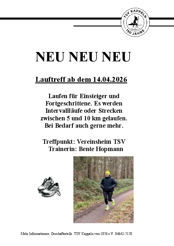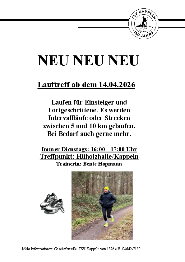 Der Lauftreff mit Bente Hopmann ist Neu im TSV Kappeln!