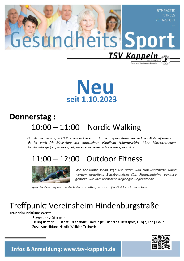 seit dem 1. Oktober Outdoor-Fitness, Sport für Übergewichtige und Nordic Walking