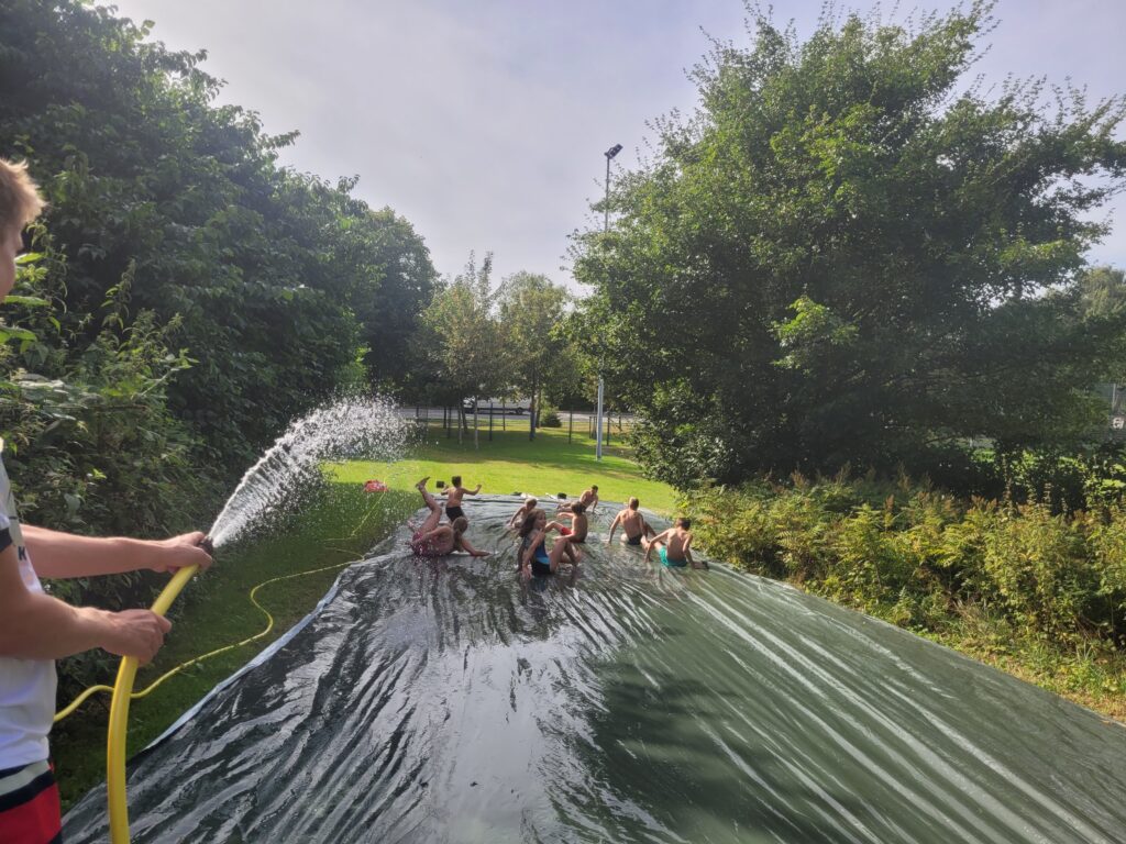 Ferienzeit ist Zeltlagerzeit und auch dieses Jahr zogen 70 Kinder aus Kappeln und Umgebung in das „Kleine Kleckse Lager“ des TSV Kappeln ein. Auf dem Sportgelände an der Hindenburgstraße wurden vom 12.08. bis zum 18.08.24 die Zelte aufgeschlagen und die Kinder von 20 Jugendlichen und jungen Erwachsenen betreut. Unter dem olympischen Motto „Die Rückkehr der Fackel“ gab es viele herausfordernde Sportspiele, eine Stadtralley, eine Nachtwanderung zum Gruseln, glamouröse Abendshows, eine tolle Hüpfburg, für die wir uns bei der VR-Bank bedanken, eine Wasserrutsche, viele kreative Bastelangebote und einiges mehr, was das erfindungsreiche Betreuerteam um die Lagerleiterinnen Kelly Thomsen und Lara Fuge sich ausgedacht hatte. Der TSV Kappeln schätzt sich sehr glücklich, so ein verlässliches und erfahrenes Team zu haben, dass seine Freizeit gibt, um Kindern ein unvergessliches Ferien-Erlebnis zu schenken.