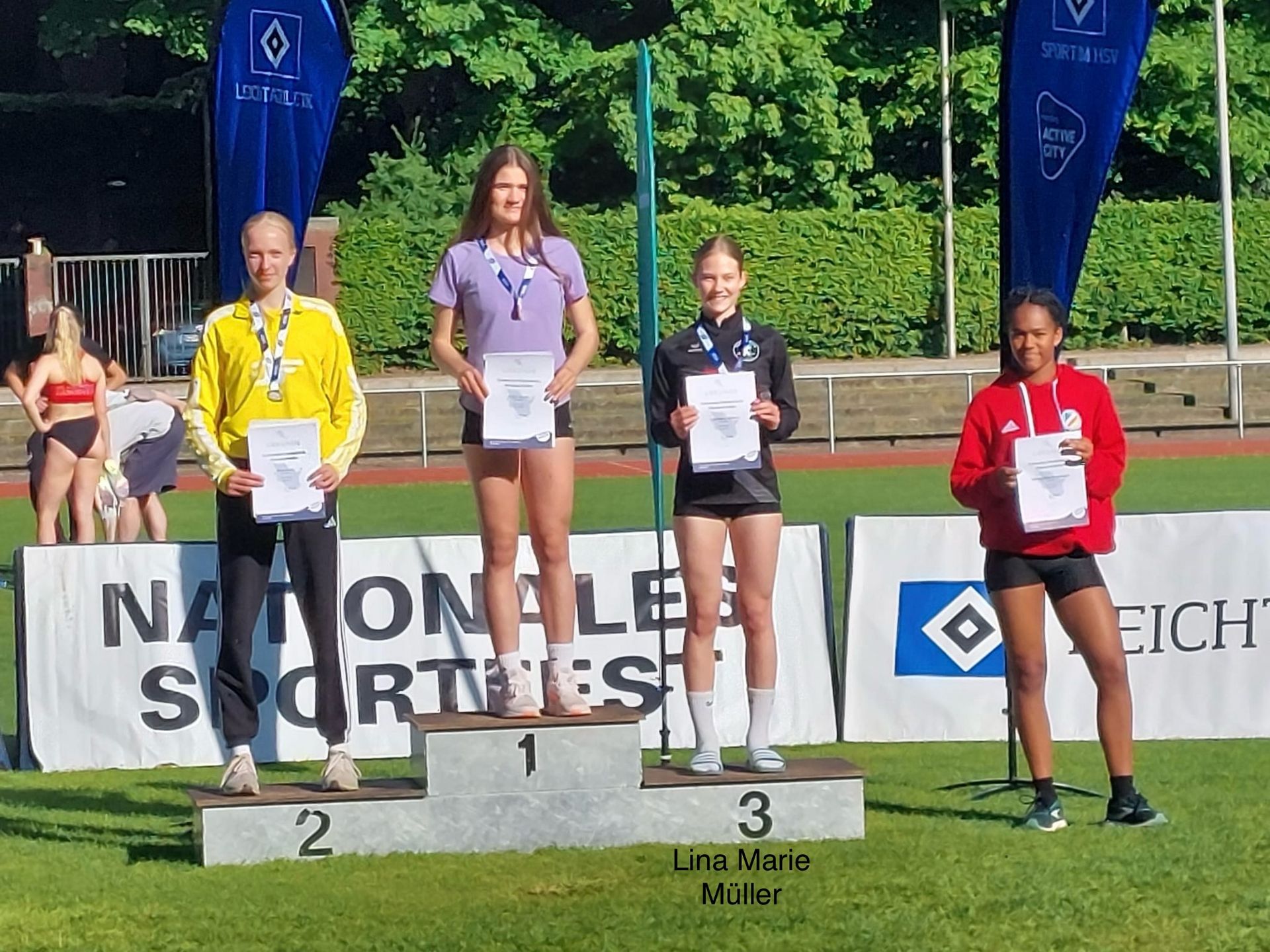 Einen hervorragenden 3.Platz bei den Landesmeisterschaften erreichte Lina Marie Müller über die 300m Hürden in der AK U16 in 49,80sek
